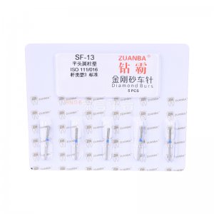 【結構及組成】由車針柄和工作部分組成。其中車針柄由不銹鋼材料制成,工作部分鍍有金剛石顆粒。